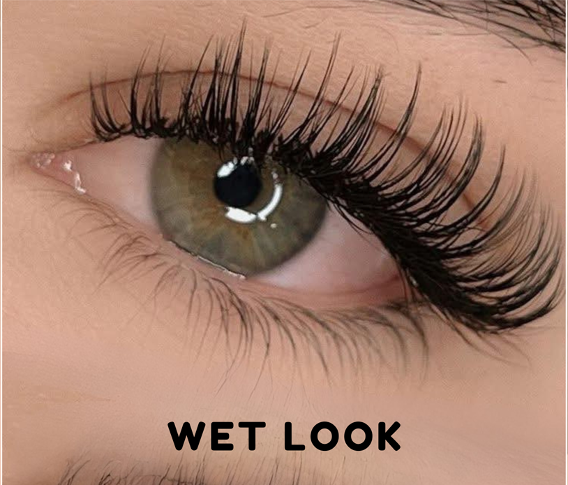 Wet look lashes are created essentially from using lighter lashes to create narrow, pretty much-closed fans, which are great for creating texture and spiky looks.